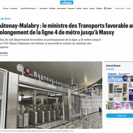 Le financement d’études par le CPER Le 20 décembre 2023, le Contrat de Plan Etat-Région (CPER) a été voté. Le volet « mobilités » prévoit notamment le financement d’études pour le prolongement de la ligne 4 du métro jusqu’à CHATENAY-MALABRY. Encore une étape franchie et notre projet qui se concrétise peu à peu ! Ci-dessous un lien …